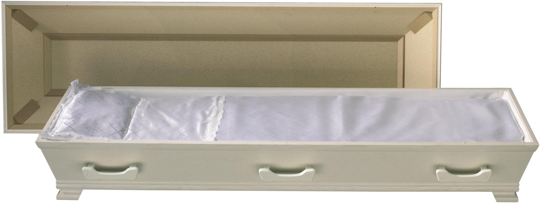 Komplett kiste med utstyr er produsert i henhold til § 29 i forskrifter til ”Lov om kirkegårder, kremasjon og gravferd.”